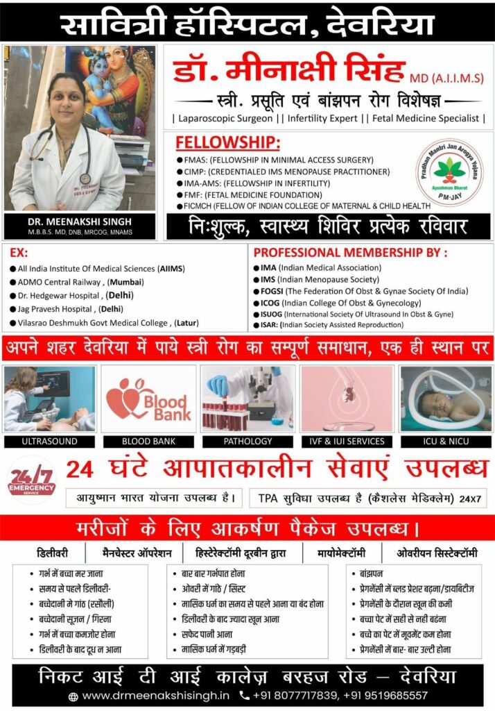 Dr. Meenakshi Singh is a trusted Obstetrician and Gynecologist in Deoria, providing expert care for pregnancy, normal delivery, high-risk pregnancy, infertility, PCOS, menstrual disorders, and women’s health problems with compassion and modern medical practices.